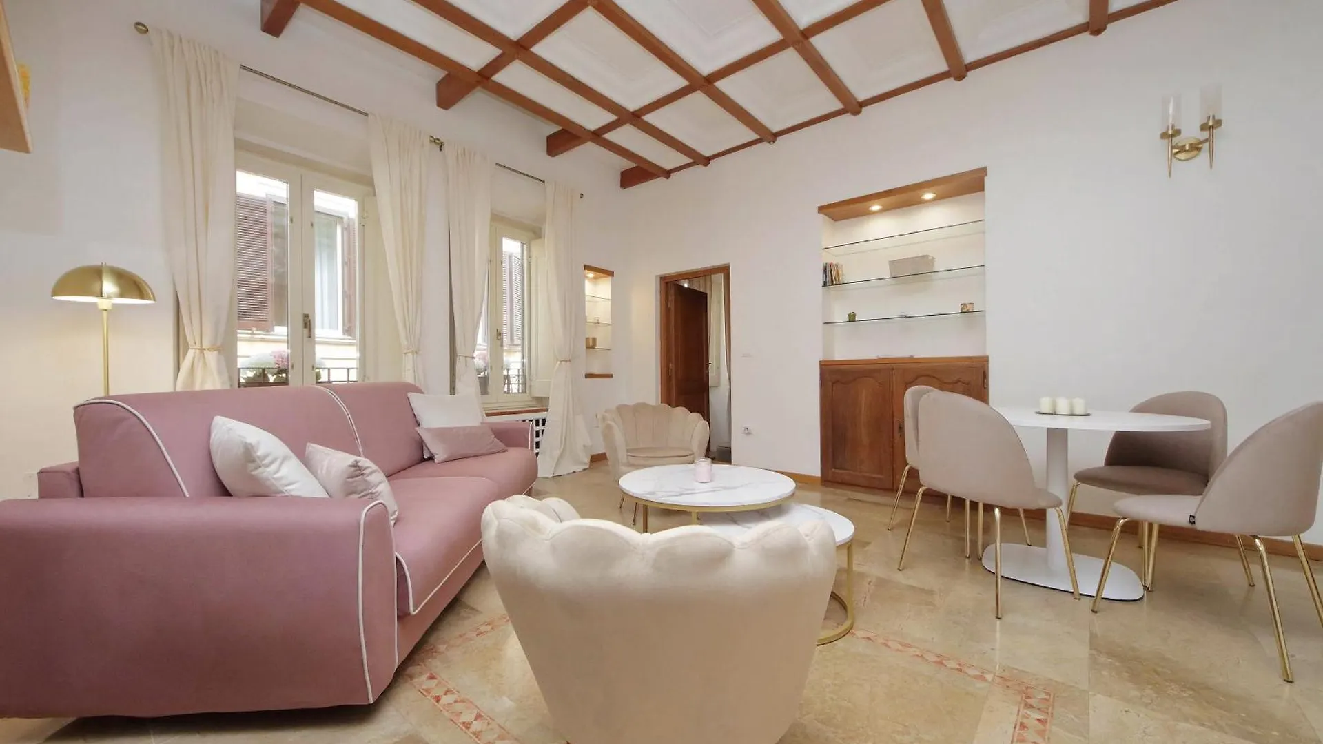 Este apartamento de 65 m^2 ofrece alojamiento en el barrio Trevi, cerca del Foro Romano. A una distancia de 850 metros de la estación de metro Barberini, este apartamento tiene acceso rápido al Panteón.
